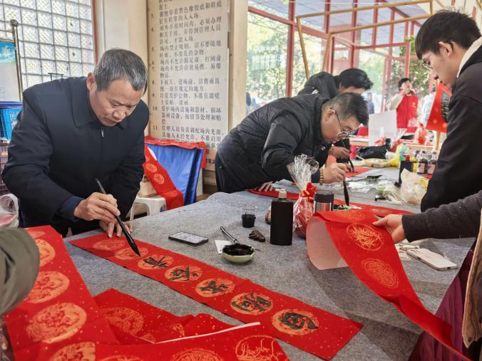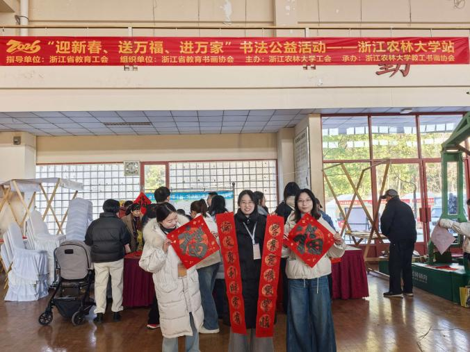 1月9日,校教职工书画协会在东湖校区体育馆举办迎新春送福活动,与“头雁”年货节共庆新春。