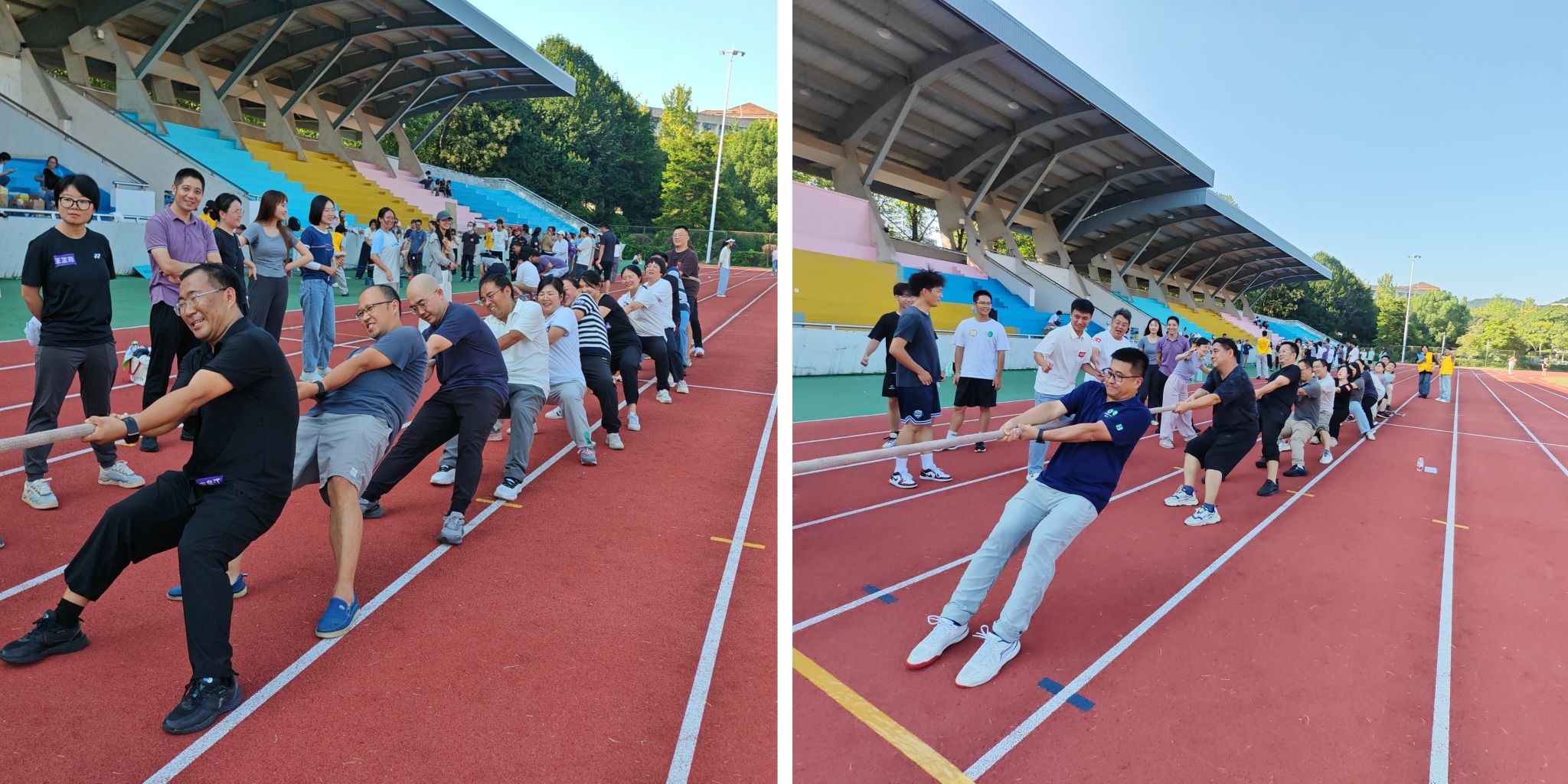 赛场上,老师们全力以赴、默契配合,既有奋勇争先的拼搏瞬间,也有笑语不断的轻松时刻。拔河比赛中齐心协力的呐喊,集体跳绳中轻盈跃动的身影,毛毛虫竞速中的协调一致,合力建塔时的沉着专注……每一个项目都考验着团队协作能力,也拉近了彼此的距离。现场气氛热烈,掌声、欢呼声、助威声此起彼伏,运动场成为欢乐的海洋。