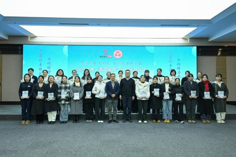 12月12日,后勤中心妇联在东湖校区举行2025年度“青蓝接力”结对仪式,首批“青蓝接力”计划结对成员及各部门女职工代表40余人共同参加。